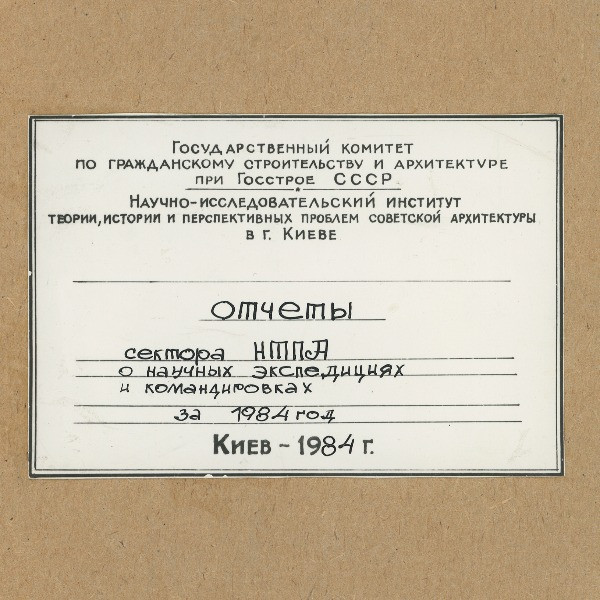 Звіт про наукову експедицію сектору науково-технічних проблем архітектури до міст Черкаси, Дніпропетровськ, Херсон, Миколаїв
