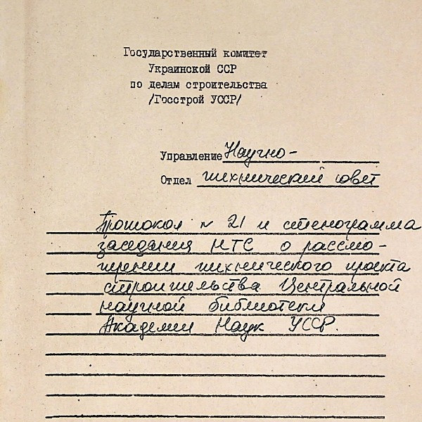 Технічний проєкт будівництва Центральної наукової бібліотеки Академії наук УРСР