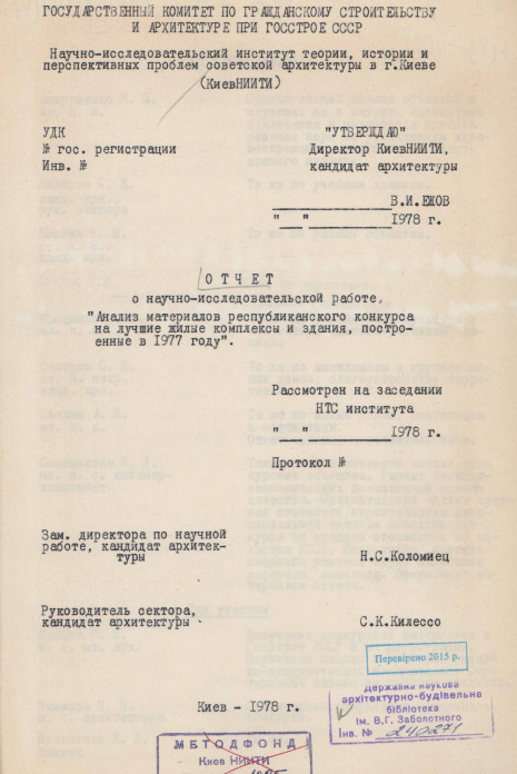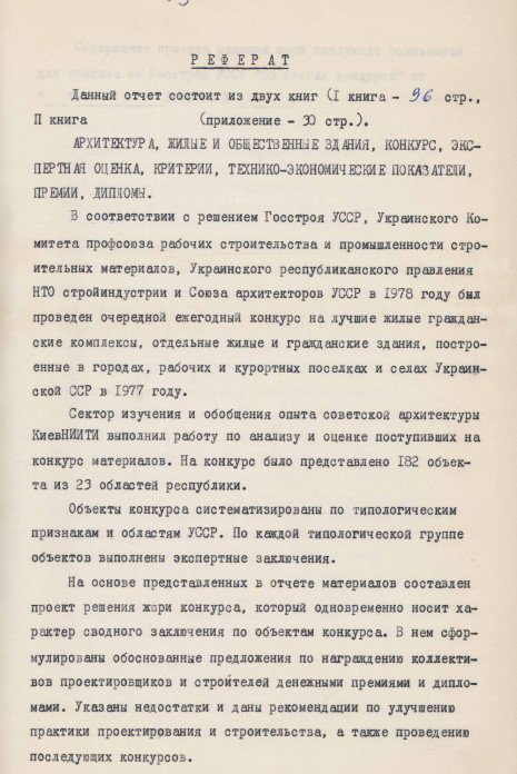 Аналіз матеріалів республіканського конкурсу на кращі житлові комплекси та будівлі, зведені у 1977 р.