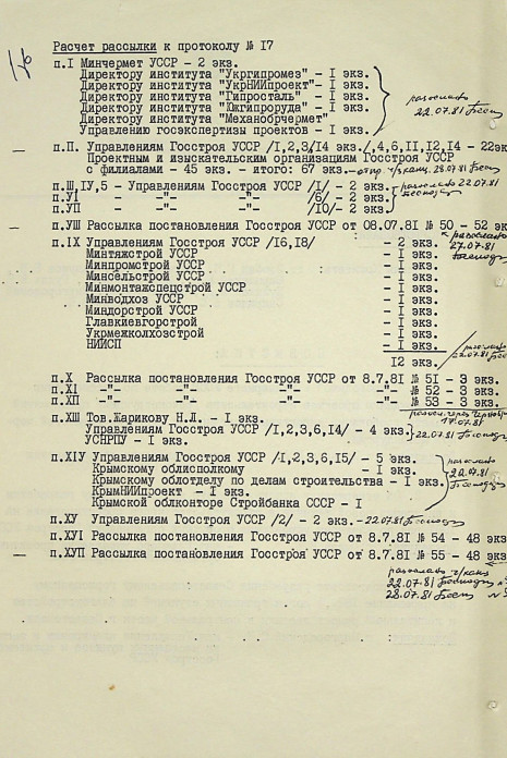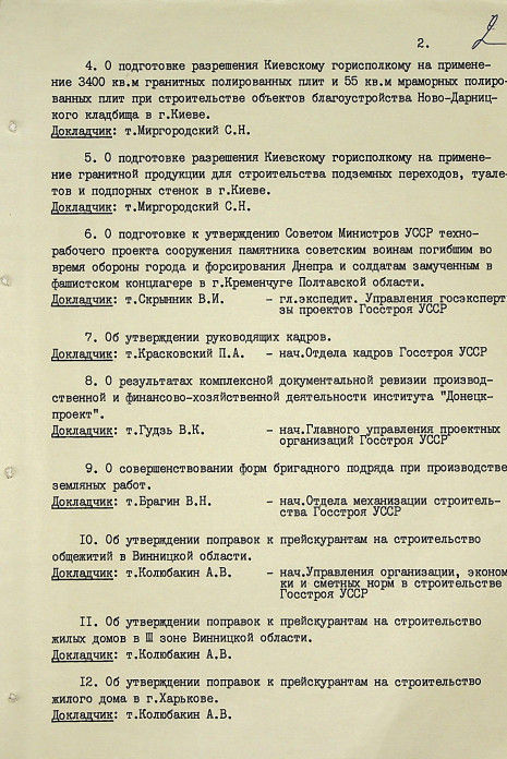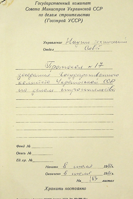 Завдання до плану запровадження нової техніки в будівництві. Матеріали до протоколу засідання Держбуду УРСР