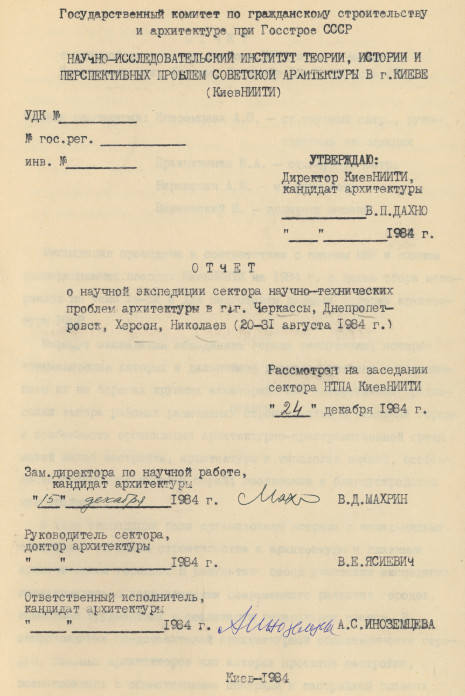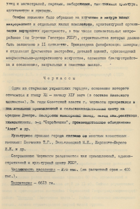 Звіт про наукову експедицію сектору науково-технічних проблем архітектури до міст Черкаси, Дніпропетровськ, Херсон, Миколаїв