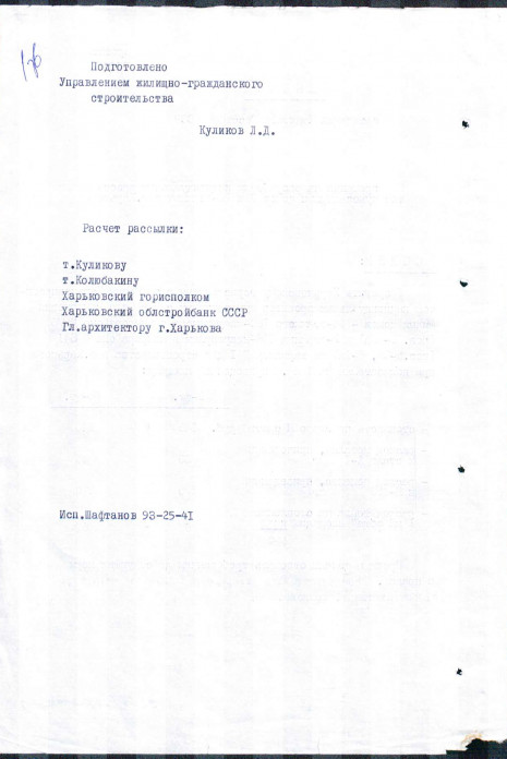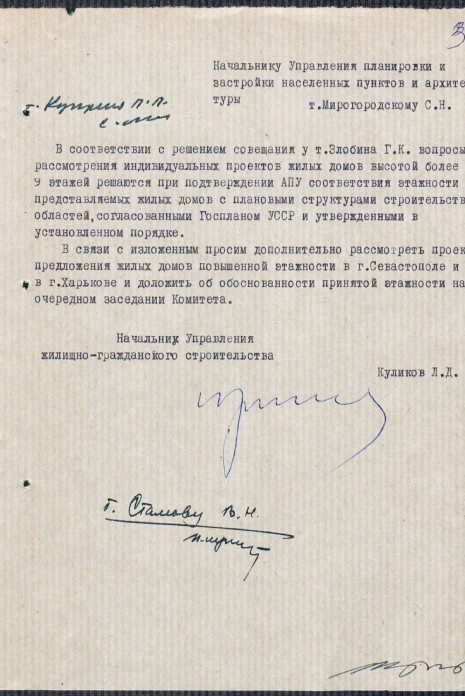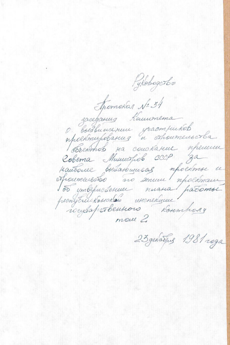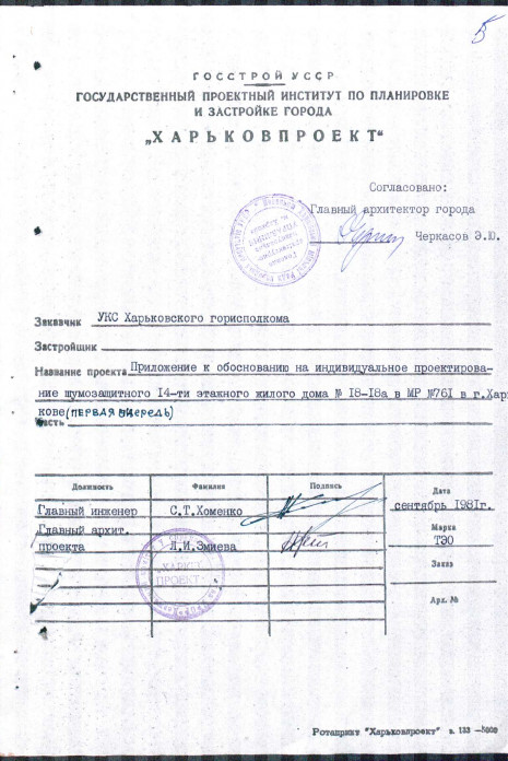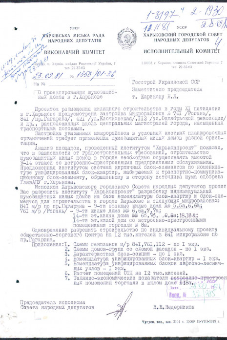 Appendices to the minutes of the meeting of the State Construction Committee of the Ukrainian SSR. Consideration of applications for individual design and individual issues of competitive act