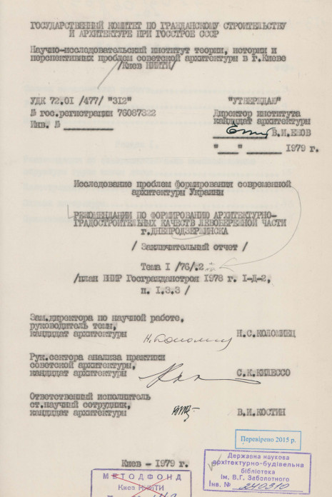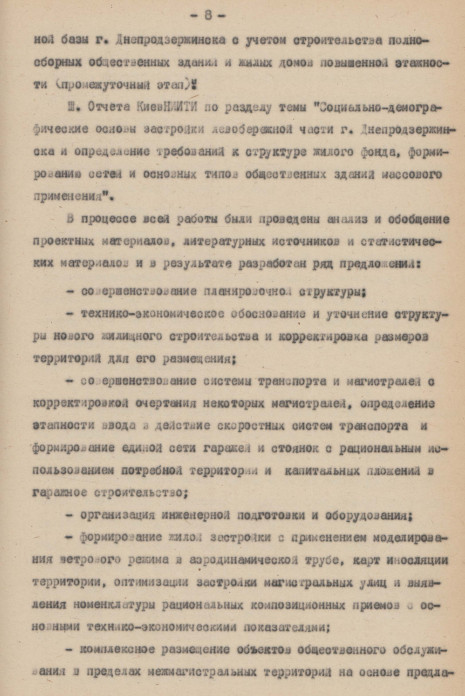 Recommendations regarding the formation of architectural and planning properties of the left bank part of the city of Dniprodzerzhinsk