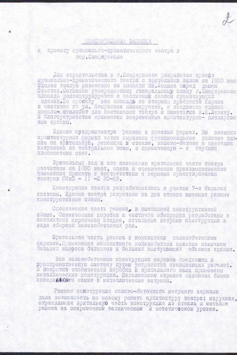 The project of a musical and dramatic theater for 1000 seats in the city of Simferopol