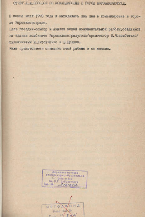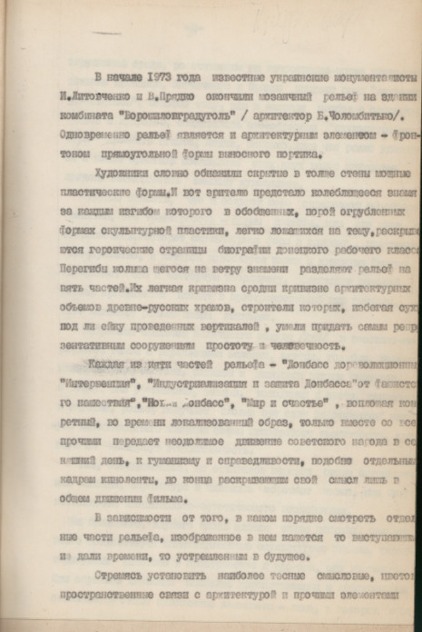 Report on a business trip to Voroshilovgrad. Analysis of the mosaic relief on the Voroshilovgradvuhillya building