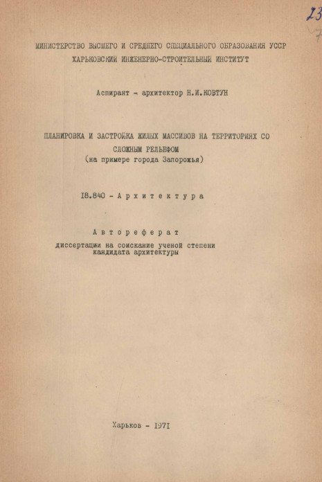 Kovtun N. Planning and construction of housing estates in territories with complex topography (on the example of the city of Zaporizhzhia)